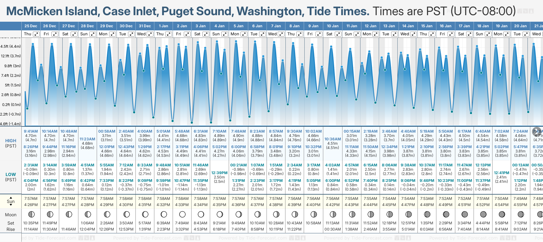 Puget Sound Tide Chart 2025. Low and high tide predictions for washington with sunrise, sunset, moonrise, moonset, and moon phase. Puget sound, rocky point, eld inlet tides.